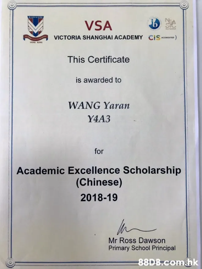 恭喜我的學生在維多利亞國際學校榮獲優秀學術獎學金(中文)!