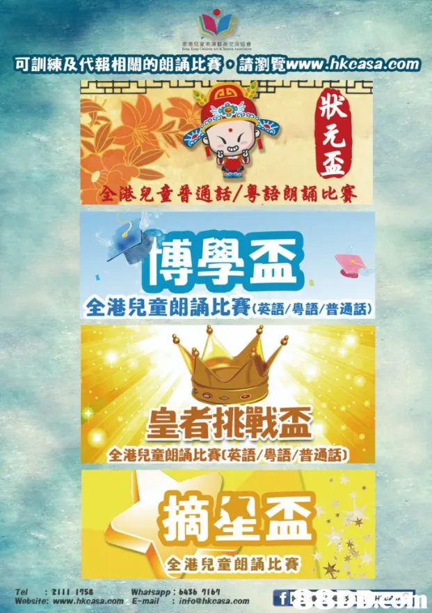 以上兩種考試有助學生考取卓越成績(最好成績) 6.中小學生及幼稚園拼音課程:為學好普通話打下堅實的根基。 7.普通話會話課程: 流利的對話,運用到日常生活中。 8.透過輕鬆、遊戲的教學方法:講故事、唱歌等增強少兒學習普通話的興趣,為普通話考試打好紮實基礎。 歡迎來電查詢,吳老師:62776469(可WhatsApp) |