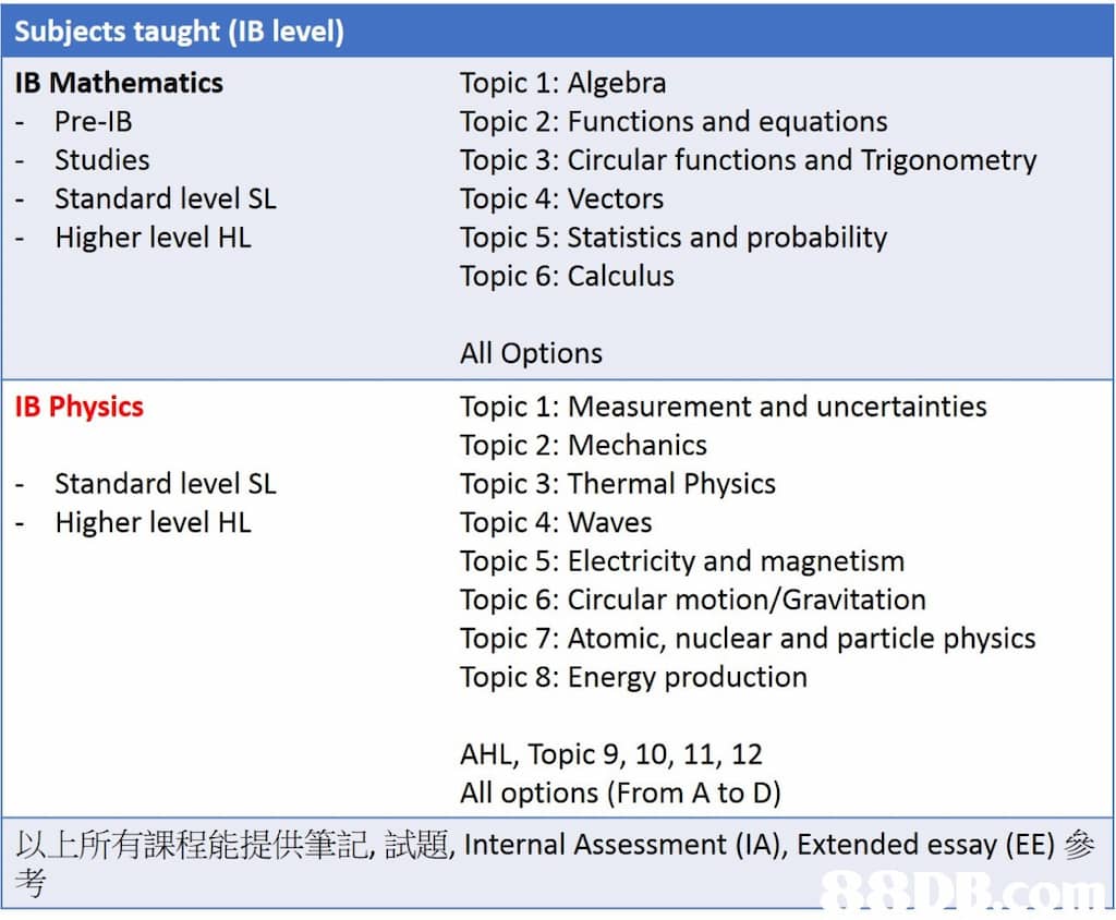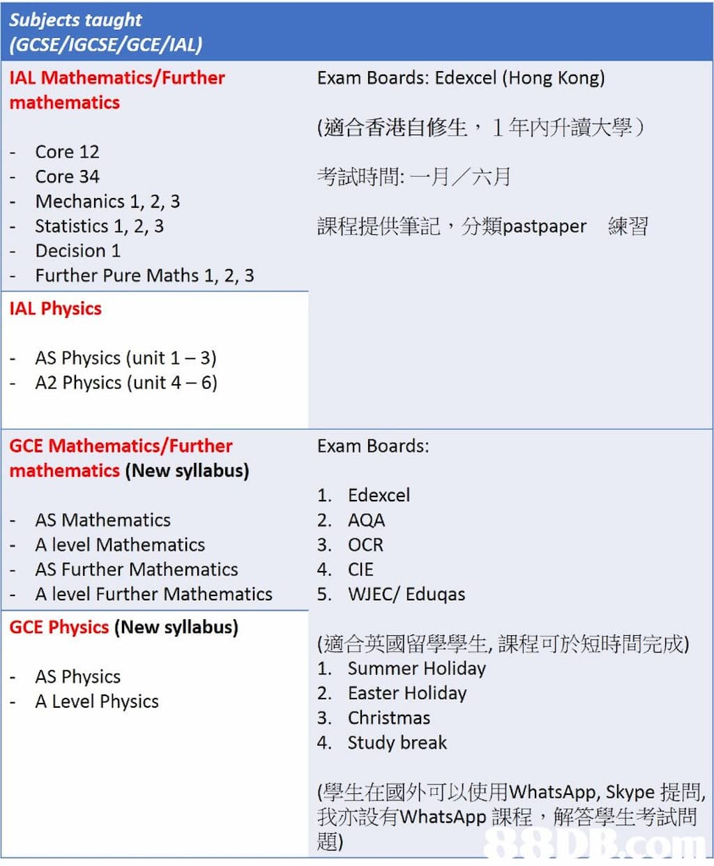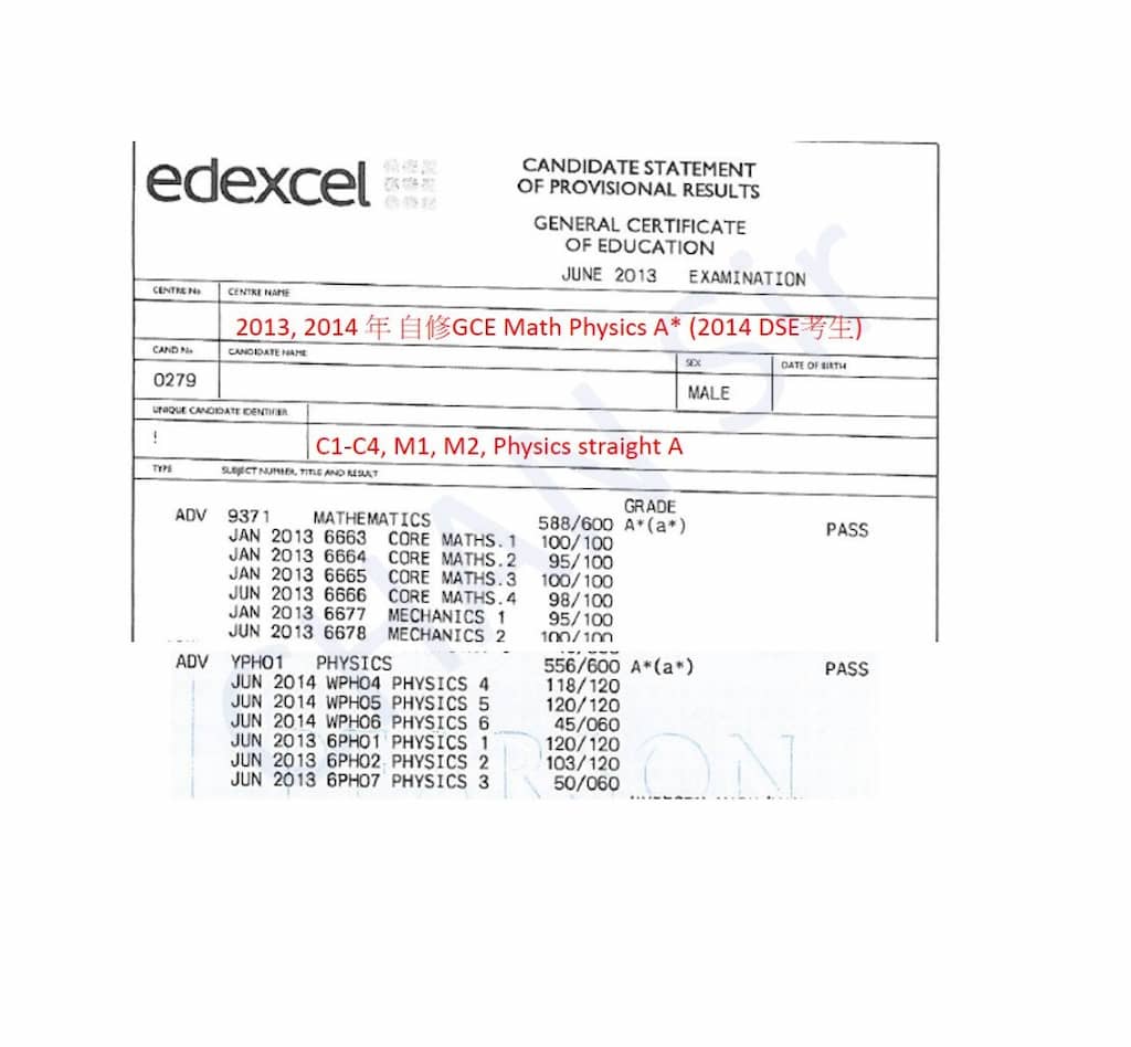 我曾於正規中學教授會考數學班,累積9年多補習經驗,notes及pastpaper豐富齊備,中一至中六補習,精補數學 maths (Core, M1, M2),精補物理 physics (all core and elective subjects), IB 國際學校補習, GCE/IAL (Edexcel, CIE, AQA, OCR, WJEC), (C1-C4, M1-M3, S1-S3, D1-D2, FP1-FP3) , GCSE, IGCSE, SAT , IB diploma programme, Maths / Further Maths 補習課程