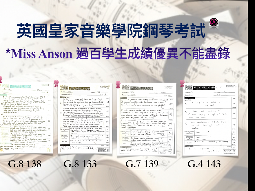 英國京士頓大學音樂榮譽學士-香港浸會大學音樂文學碩士,全職授琴近30年,考獲多個演奏級文憑。擔任鋼琴比賽評判十多年。Miss Anson 親自為教室學生提供優質三角琴錄影服務及指導 。專業的指導並結合多年的教學心得,學生不走彎路。經驗豐富,用心教學。教授各級鋼琴: 🎼一級至8級/ARSM/ ATCL/ LTCL 小提琴/樂理。*新生享心意回贈,詳情請查詢