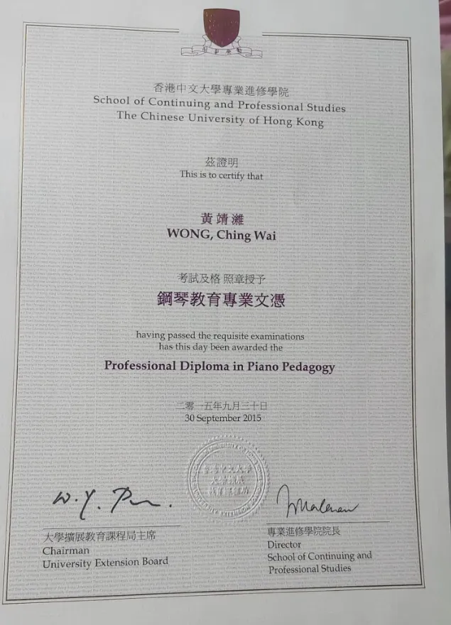 🎵CUSCS Professional Dipolma in Piano Pedagogy