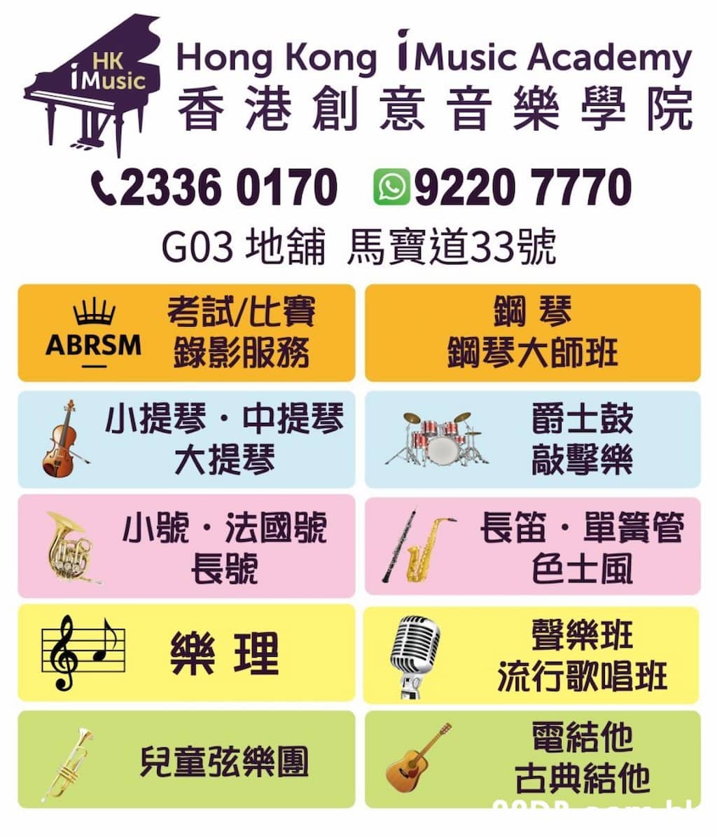 地址:香港創意音樂學院 北角馬寶道33號G03地舖