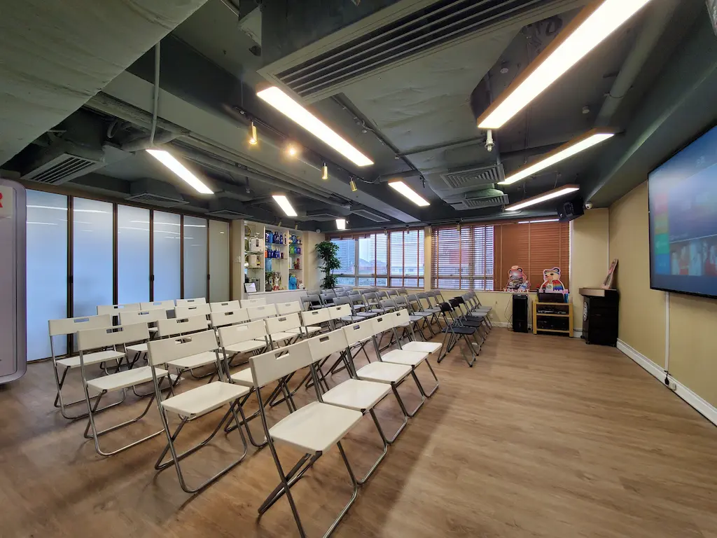 位於尖沙咀黃金地段,兩分鐘到港鐵站。設有大型顯示器、大/細會議桌、設有雪櫃、冰箱、水位、洒杯,電磁爐等,可簡單煮食,亦可提供美食到會。冷氣充足,景觀開揚!可提供多種setting,適合大型講座、商務會議、業務交流,興趣工作坊、培訓等等,歡迎教室合作!場租以每小時計算(兩小時起),亦可以日/月租,價錢可再商議!另外有小型化妝教室及KOL直播室可租用!歡迎whatsapp或致電查詢,電話:9499 9578,歡迎預約上門參觀場地。