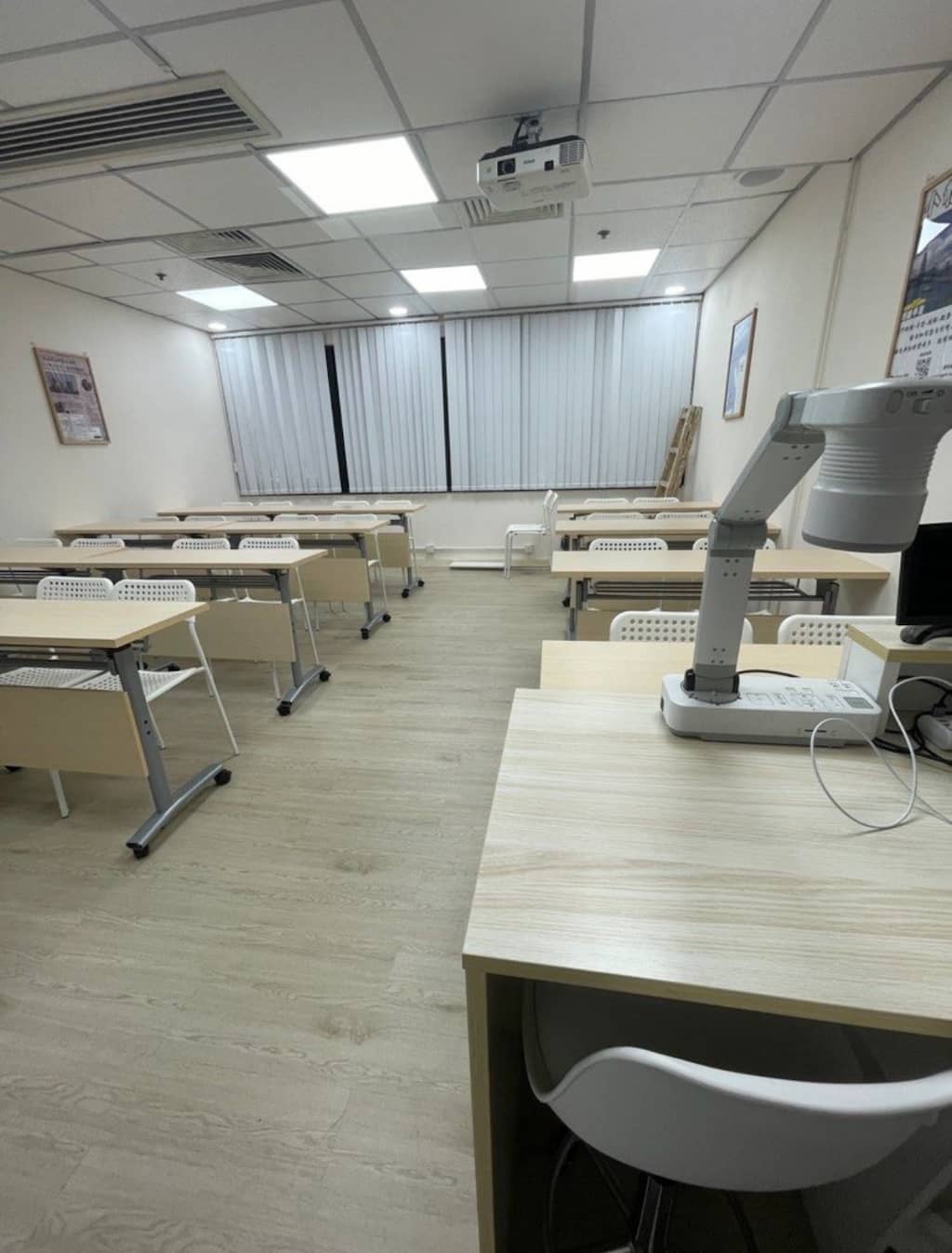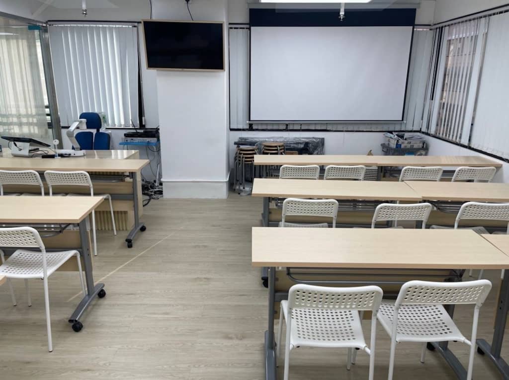 所有課室有自然採光,地方寬敞,全天候獨立冷氣不另收費、設備完善、實物投影機、apple TV、平面電視、空氣淨化設備、充電器、LCD Projector、免費Wi-Fi無線上網、飲水機、白板。(因個人電腦及打印機屬私人物品,恕不提供)
