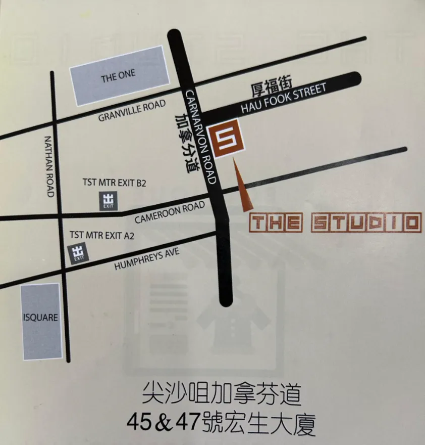 Address : Shop 116-117, Houng Sun Building(The Studio), Cararvon Road 45-47, Tsim Sha Tsui