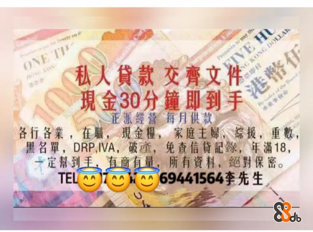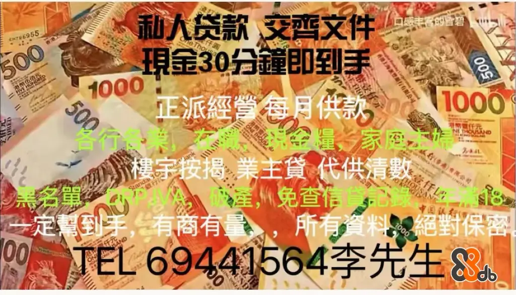 超快借錢,特快貸款免入息$$$煩惱,一個電話幫你解決,免除繁複過程,手續簡易快捷,電話預先審批,最快即日完成提取,直接申請,免TU審查。破產,壞帳,黑名單,重數,綜援,學生,地盤,現金糧,家庭主婦,散工,任何在職人士都一律歡迎。$ 5000 至$100000 有身份證住址證即可!全年無休,歡迎致電查詢 24小時WHATSAPP54468083李生