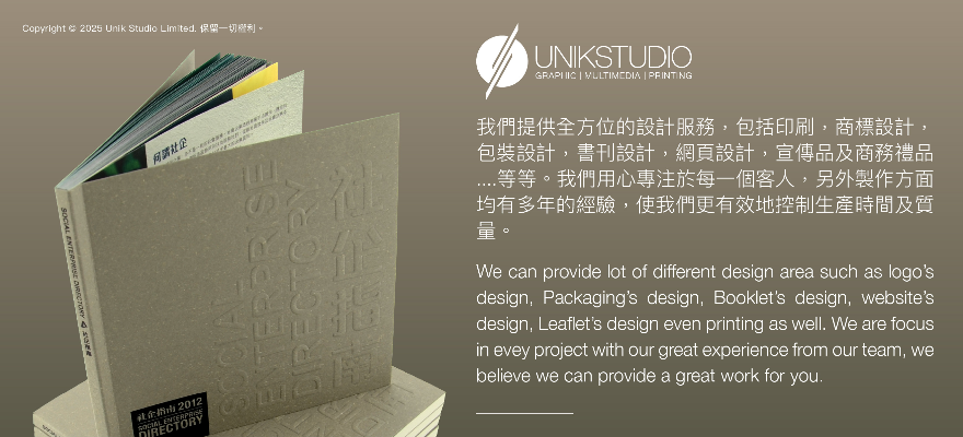 Unik Studio 成立於 2009 年,是一家立足於香港的專業平面設計工作室。