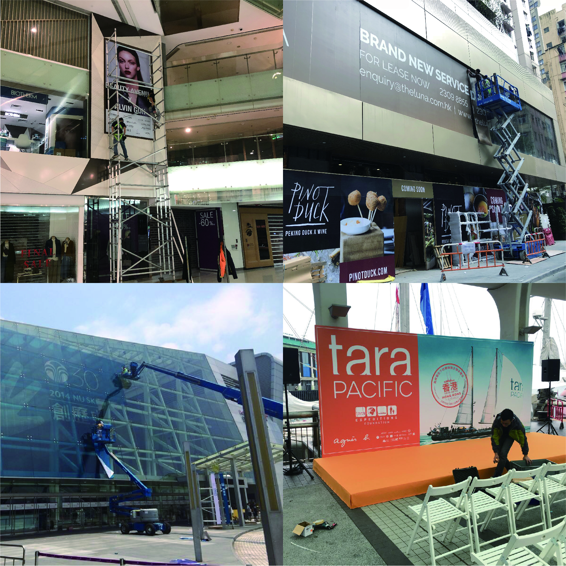 我們提供各類型廣告安裝工程,例如圍板、橫額、招牌、車身廣告等。 擁有經驗豐富的裝裱工程團隊,為客人安裝以達致最佳宣傳效果。